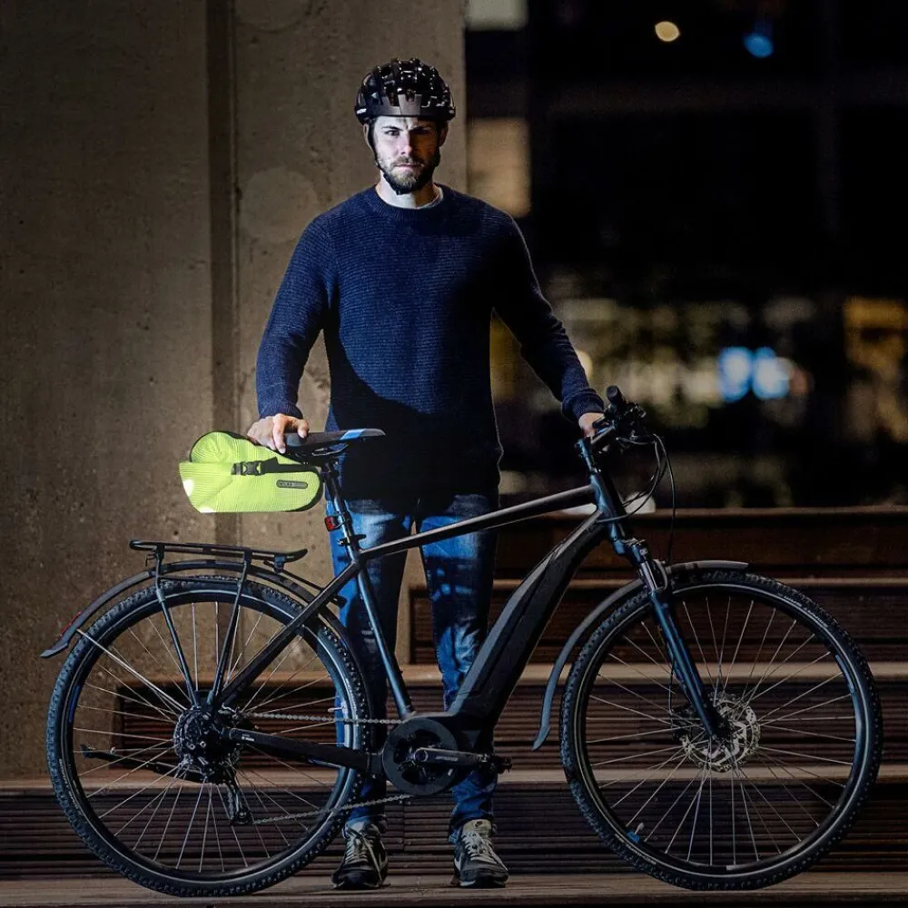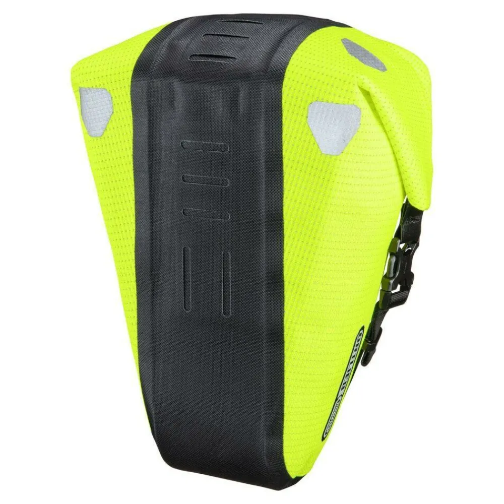 Een echte ORTLIEB-klassieker in een nieuw herziene versie: de waterdichte Saddle-Bag Two High Visibility bestaat uit reflecterend weefsel op het hele oppervlak in een veel aandacht trekkende combinatie van neongeel met zwart voor meer zichtbaarheid. Met 4,1 l volume vervangt de zadeltas een kleine rugzak. Ideaal voor sportieve racefietsers en mountainbikers en iedereen die met minimalistische bagage op pas wenst te zijn – of als praktische bijkomende tas tijdens langere tochten met veel bagage. Dankzij een comprimeerbare rolsluiting en zijdelingse steeksluitingen is daarin alles veilig en wankelvrij verpakt en desondanks snel toegankelijk.
