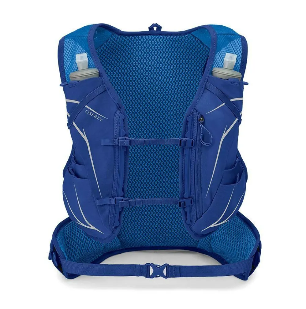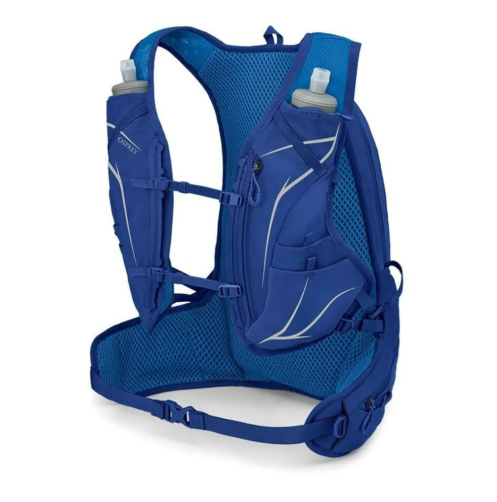 De Duro 15 van Osprey is ontworpen voor trailrunning en andere races. Dit lichtgewicht rugzakje heeft een goed omsluitende pasvorm, zo heb je er geen last van tijdens het intensief sporten. Voorzien van twee 500ML zachte flesjes en voldoende ruimte voor voedsel en andere uitrusting, ondanks deze ruimte is het toch een slanke en stabiele tas. De heup- en schouderbandvakjes zijn ergonomisch geplaatst om gemakkelijk onderweg toegang te geven tot snacks, supplementen en uitrusting. Gemaakt met 100% gerecyclede materialen. Je kan hier ook nog een extra waterdrinksysteem in gebruiken.