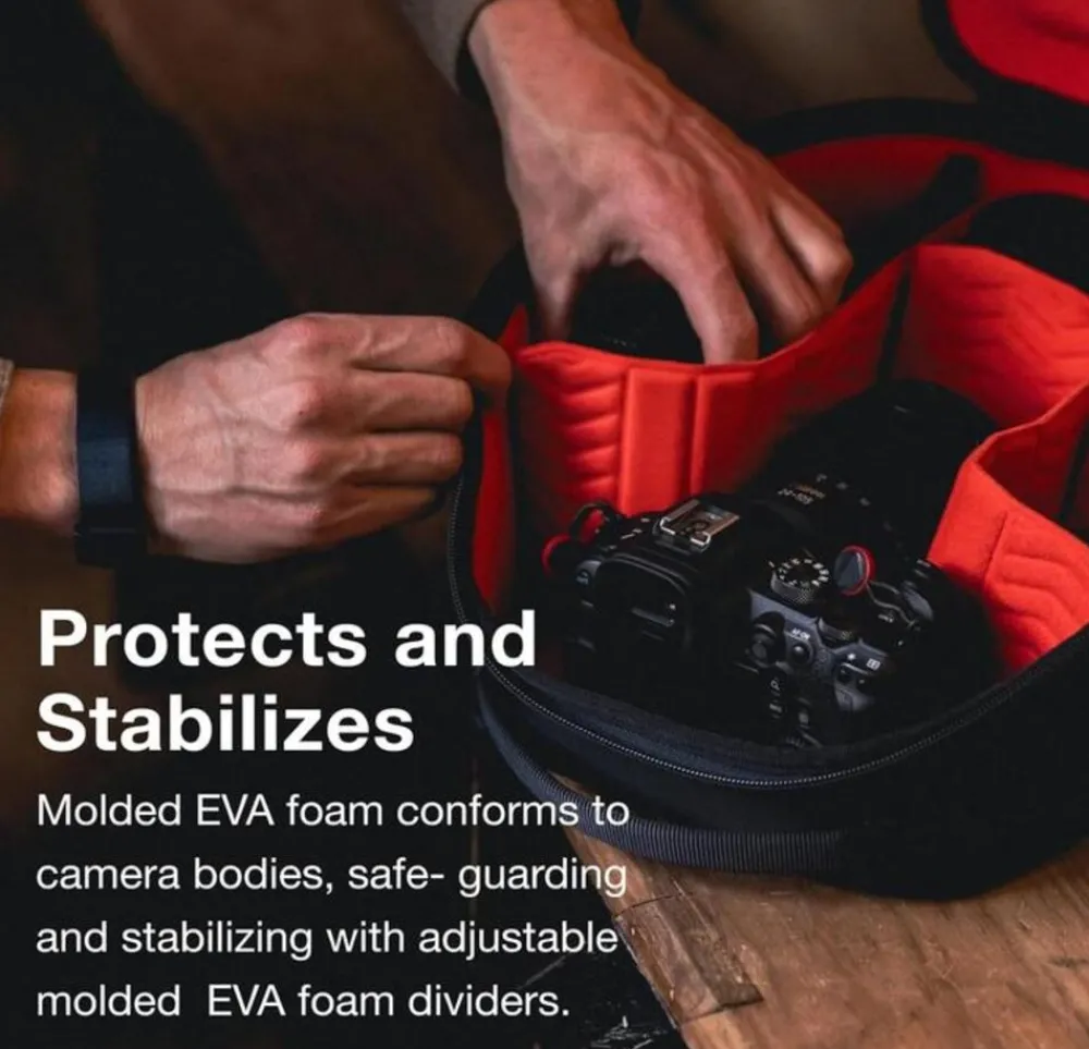 - Gegoten EVA-schuim past zich aan de camerabody aan