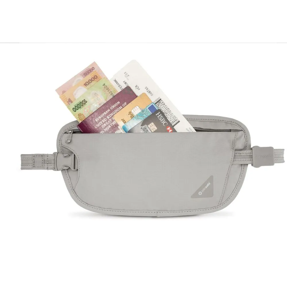 De Coversafe X100 van Pacsafe draag je comfortabel om je middel onder je kleding zodat je je niet meer zorgen hoeft te maken over je waardevolle documenten en geld. De Coversafe X100 is voorzien van een verstevigde heupband die niet zomaar kan worden doorgesneden. De buitenstof is RFIDsafe, wat voorkomt dat eventuele skimmers bankpassen kunnen scannen.