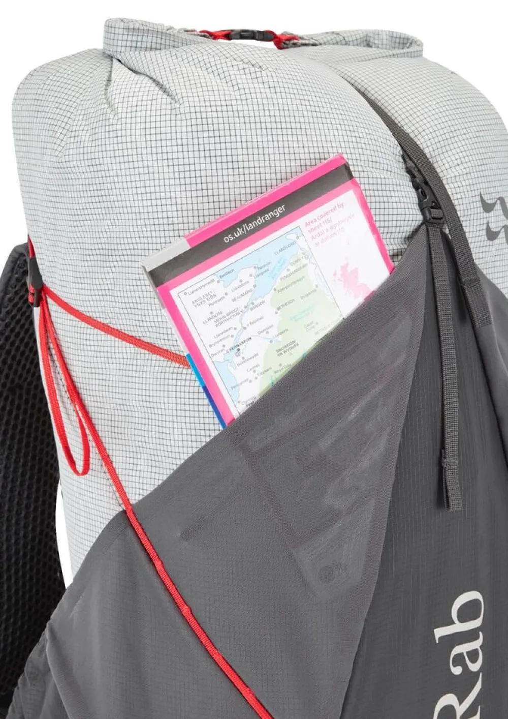 De Muon 40 van Rab is een ultra lichtgewicht rugzak met een inhoud van 40 liter en een gemakkelijke roltoptoegang. De rugzak is gemaakt van duurzaam Spectra™ Ripstop-stof. Het nauwsluitende TRI-FLEX™ draagsysteem heeft een omhullende harnas, gevormd lendekussen en ondersteunende heupriem, wat betrouwbare comfort biedt, ook bij het lopen van lange afstanden.