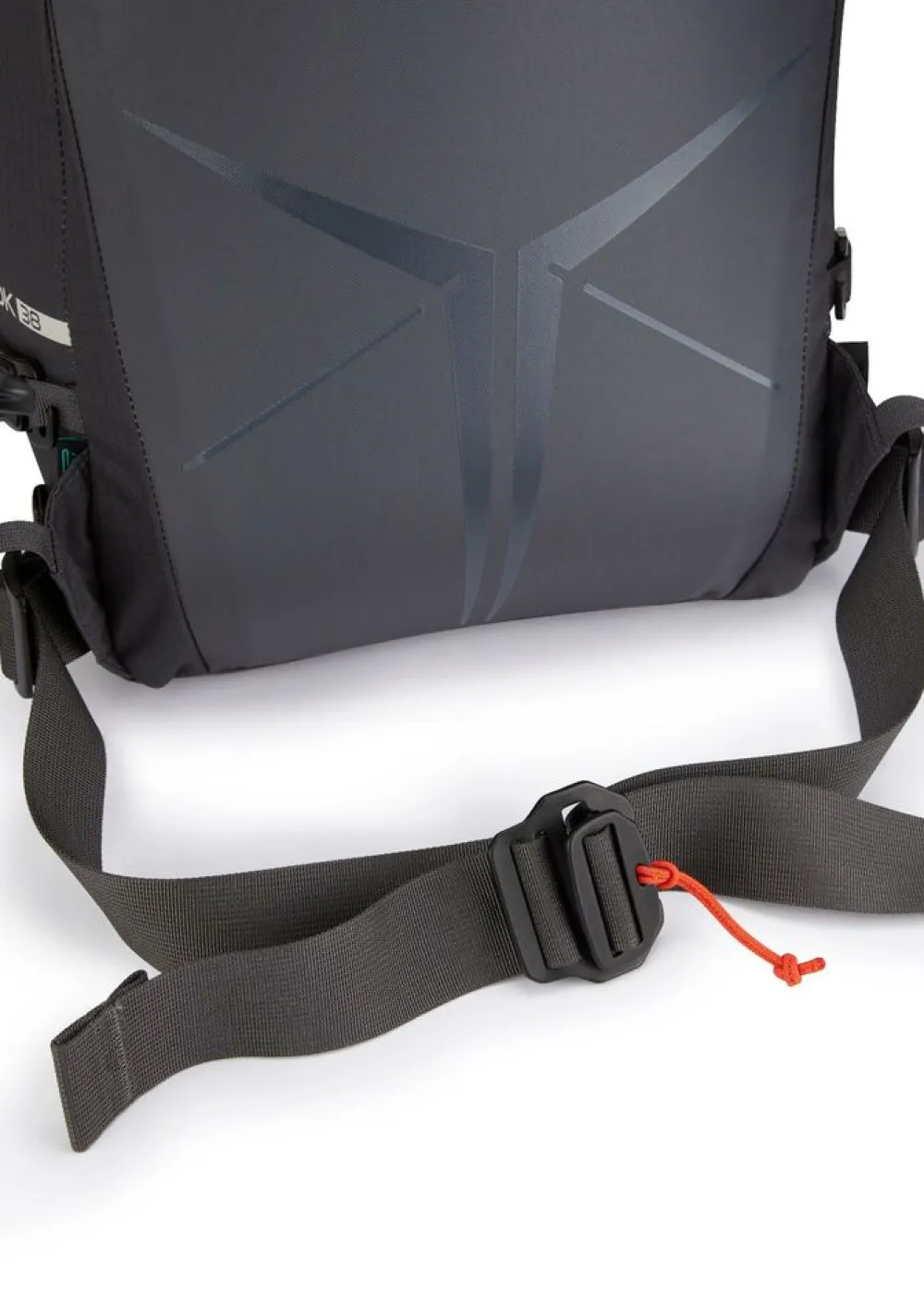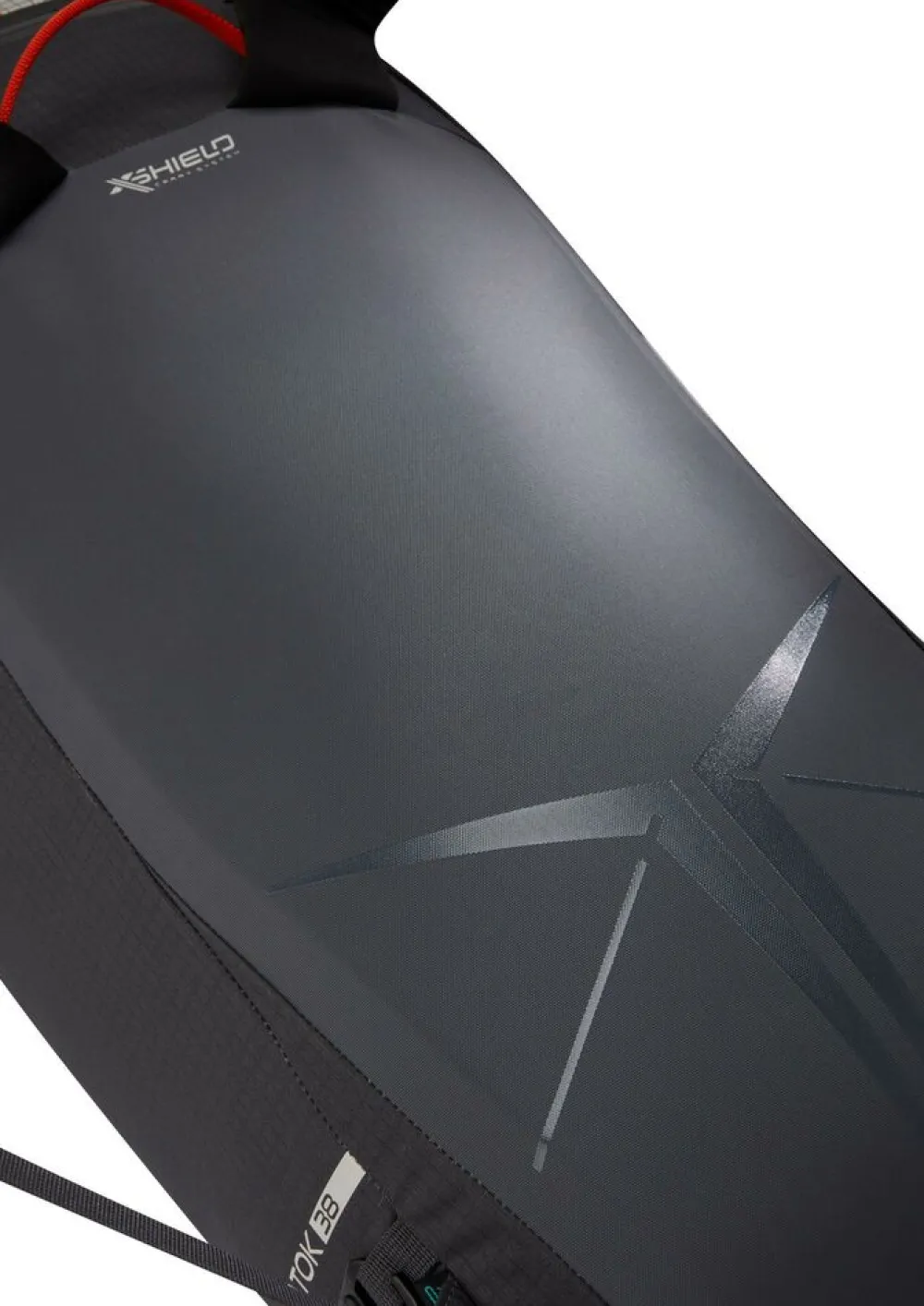 De Latok 38 van Rab is een lichtgewicht, minimalistische klimrugzak. De rugzak heeft meerdere afneembare onderdelen om nog lichter op pad te gaan. Zo kan je het foam uit het rugpand halen en de compressiebanden er makkelijk opdoen en er afhalen. De Latok is gemaakt van zeer stevig materiaal. Hier bovenop zit nog een HydroShield afwerking. Samen met een roll top afsluiting maakt dit de rugzak zeer weerbestendig. Het X-Shield rugpand zit dicht tegen het lichaam voor maximale bewegingsvrijheid.
