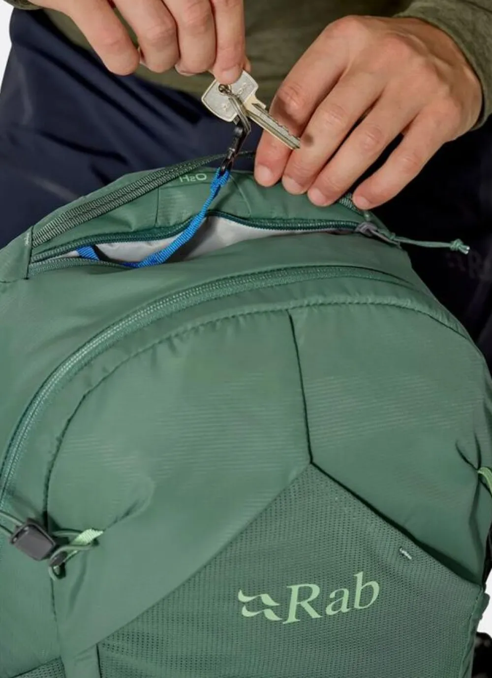 - Berg je waardevolle spullen op in het bovenste ritsvak met veiligheidsclip, met een clip om je sleutelsveilig te bewaren.