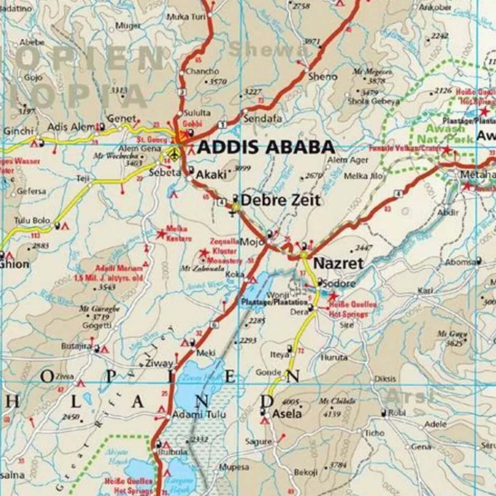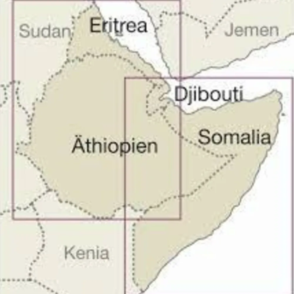 Landkaart Ethiopie, Somalie, Eritrea & Djibouti: