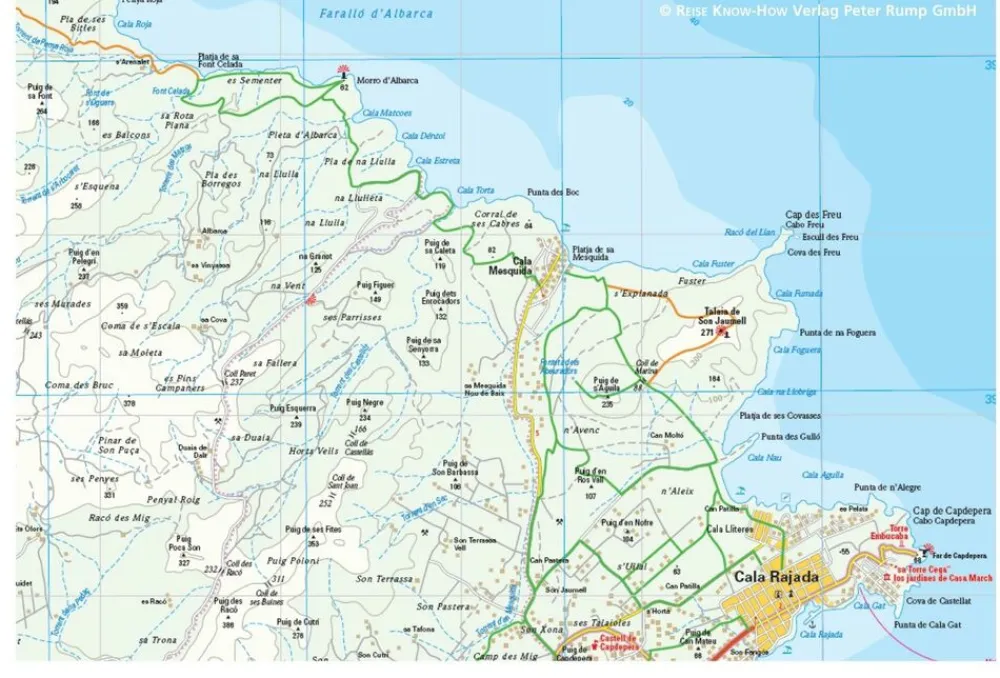 Wegenkaart van het oostelijk deel van Mallorca