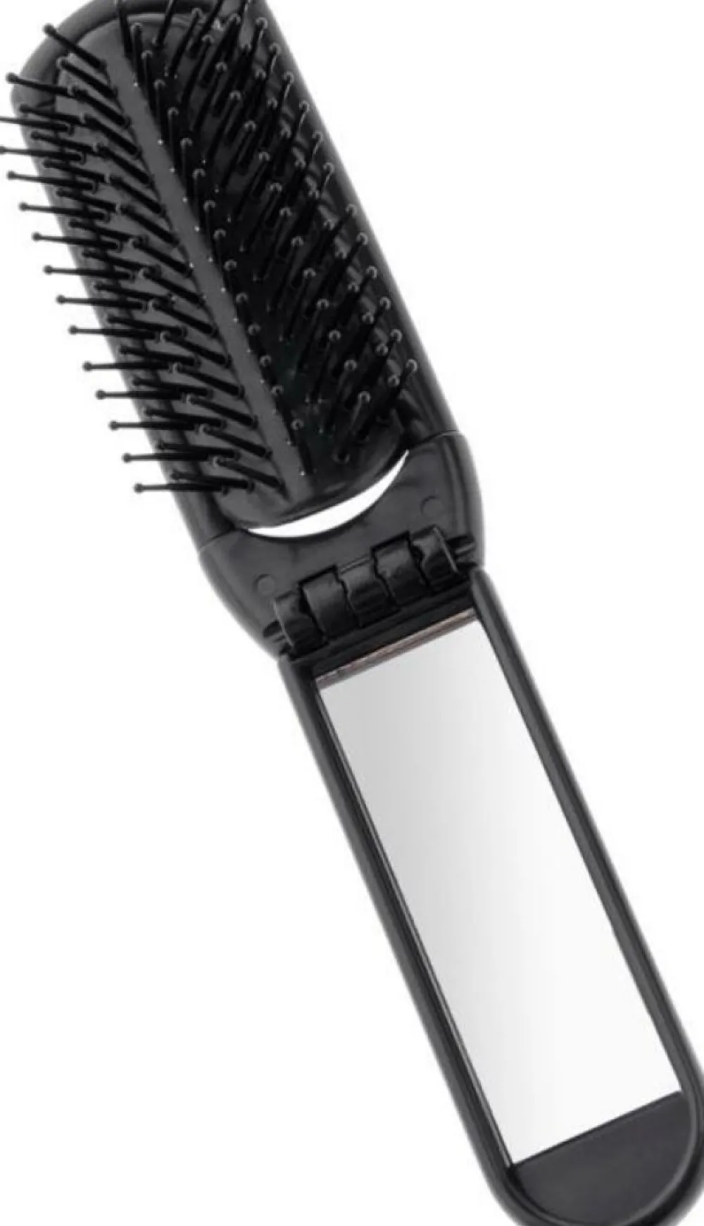 Een Opklapbare borstel van Relags. De borstel bevat een klein spiegeltje ,De borstel is opklapbaar en de borstelharen invouwbaar, zo is deze borstel lekker compact om mee te nemen.