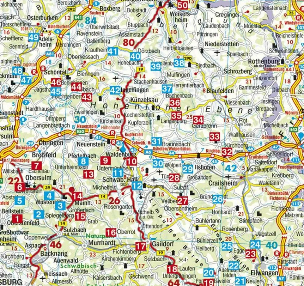 Uitstekende, compacte Duitstalige wandelgids met wandelingen in de Hohenlohe met Mainhardter Wald, Löwensteiner en Ellwanger bergen.
