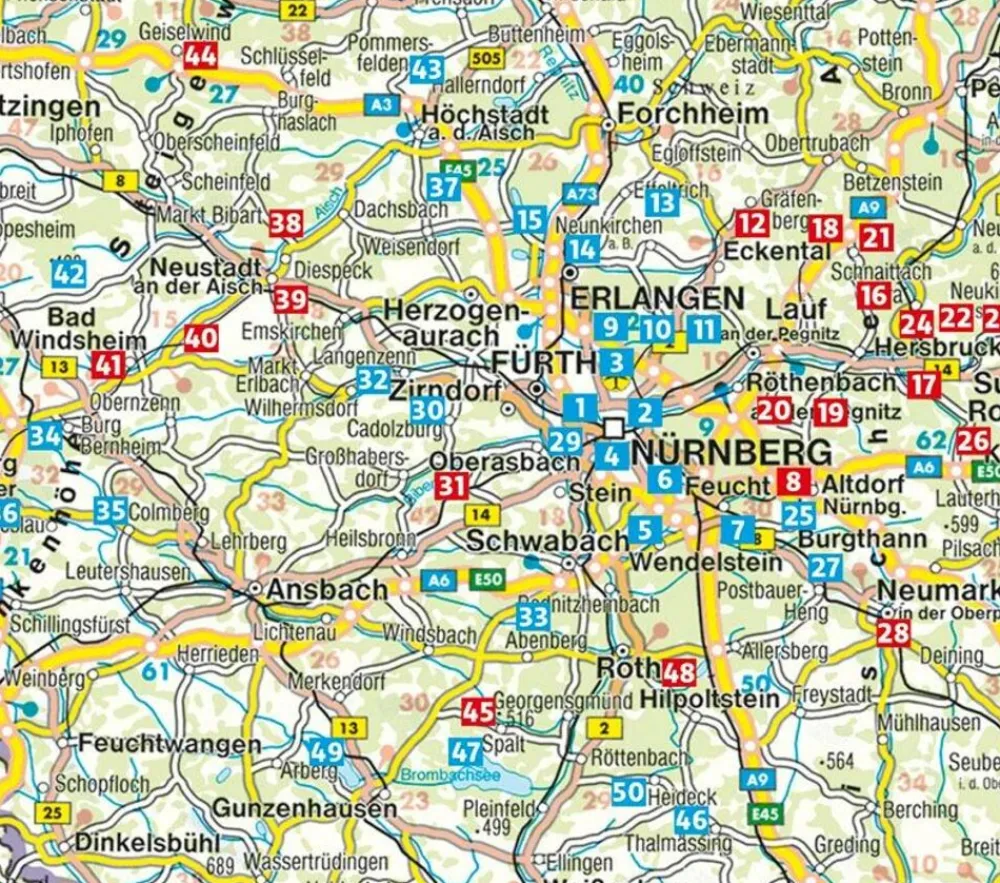 Die Landschaft rund um das Städtedreieck Nürnberg Fürth und Erlangen bietet enorme Vielfalt: Schroffe Felswände in der Hersbrucker Schweiz, stille Laubmischwälder auf der Frankenhöhe, sonnige Weinberge im Steigerwald, tausende Karpfenweiher im Aischgrund, Badespaß im Fränkischen Seenland und vieles mehr.
