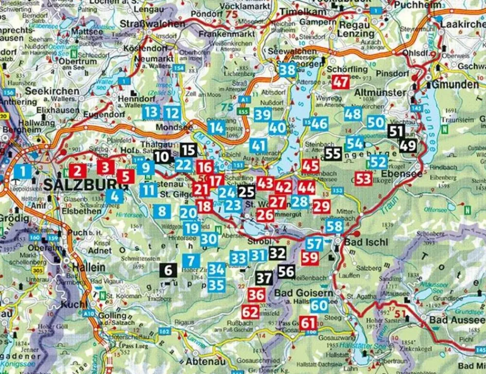 Uitstekende, compacte Duitstalige wandelgids met wandelingen in het westen van de Salzkammergut: tussen Salzburg en Bad Ischl, rond de Attersee, Traunsee en Wolfgangsee.