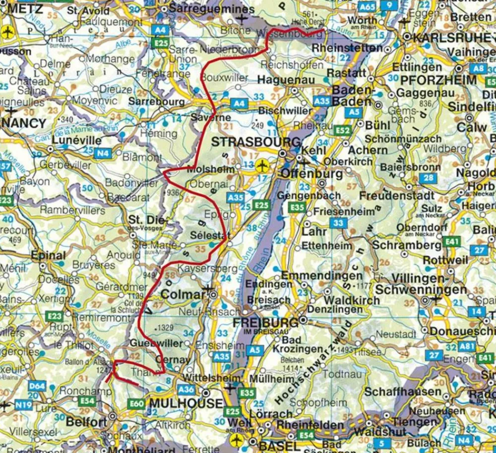 Die Vogesen sind nicht nur eines der urwüchsigsten Mittelgebirge in unseren Breiten, sondern bieten sich gerade für mehrtägige Touren in besonderem Maß an. Die Landschaft ist ungemein vielfältig; die Palette reicht von den Hügeln der Nordvogesen mit ihren hellen Mischwäldern und den zahllosen bizarren Sandsteinfelsen, auf und in die unsere Vorfahren oft abenteuerliche Burgen gebaut haben, über die riesigen Waldgebiete der Mittelvogesen, wo man an Werktagen kaum einer Menschenseele begegnet, bis hin zu den fast alpinen Steilflanken und Bergwiesen der Hochvogesen, die tagelange Höhenwanderungen ermöglichen. Geschichtlich und kulturell Interessierte kommen überall auf ihre Kosten, denn bei nahezu jeder Etappe trifft man in dem alten Grenzland Elsass auf Spuren einer bewegten, nur zu oft kriegerischen Vergangenheit von der “Heidenmauer”, einem riesigen gallo-römischen Ringwall, bis zu den Hinterlassenschaften der beiden Weltkriege. Nicht zuletzt ist auch die Infrastruktur für Weitwanderungen ideal: Man bewegt sich zumeist auf schmalen Pfaden und Steigen und übernachtet in kleinen Gruppenquartieren (Gîtes d étape), einfachen Landgasthöfen mit oft sehr guter Küche und im Süden in zumeist herrlich gelegenen Ferme-Auberges.§Die vor bereits mehr als 120 Jahren vom damals deutschen Vogesenclub angelegte Hauptwanderlinie von Wissembourg bis Masevaux bzw. Belfort, heute als GR 53 bzw. GR 5 bezeichnet, berührt die meisten attraktiven Punkte der elsässischen Vogesen und erfreut sich in den letzten Jahren ständig steigender Beliebtheit. Bonne randonnée et bon appetit!