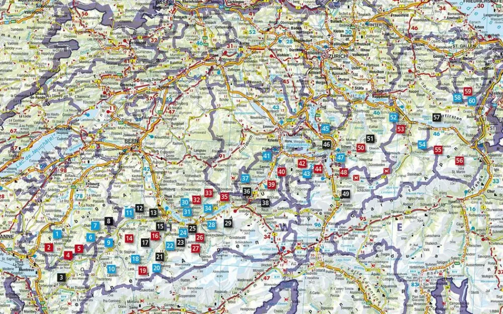 Overzichtsboek met 60 graatwandelingen in Zwitserland, tussen het Meer van Geneve en de Bodensee.