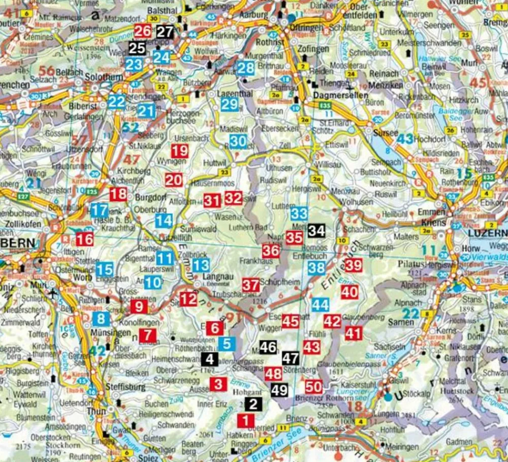 Uitstekende, compacte Duitstalige wandelgids met 50 wandelingen in de regio’s Emmental, Oberaaragu en Entlebuch.