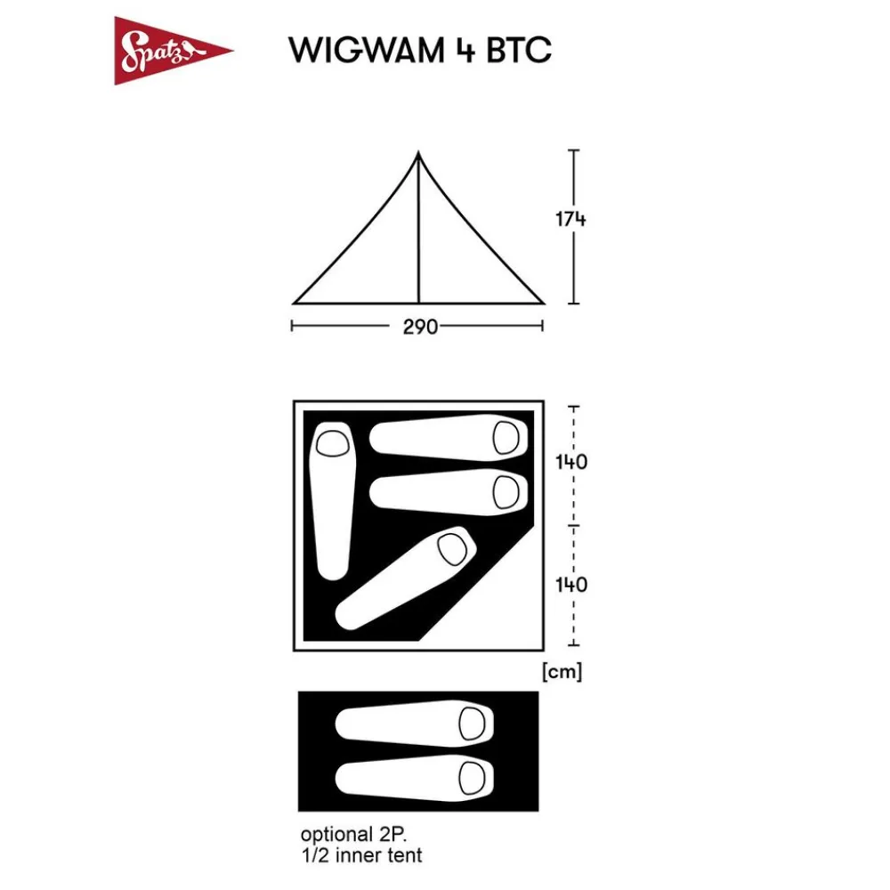 De Wigwam 4 BTC van Spatz is een lichte BTC-tent (Breathable Technical Cotton) met de perfecte verhouding tussen ruimte en gewich. De WIGWAM 4 combineert een uitstekende ventilatie en ademend vermogen met stevigheid als bescherming tegen barre weersomstandigheden.
