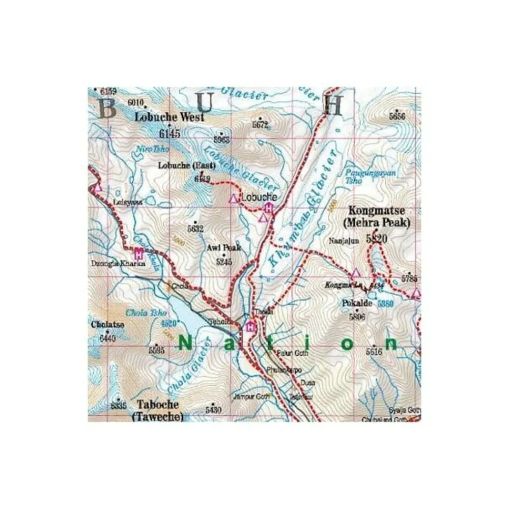 Geplastificeerde trekkingmap met ingetekende wandelpaden, berghutten en campings. Schaal 1:100.000.