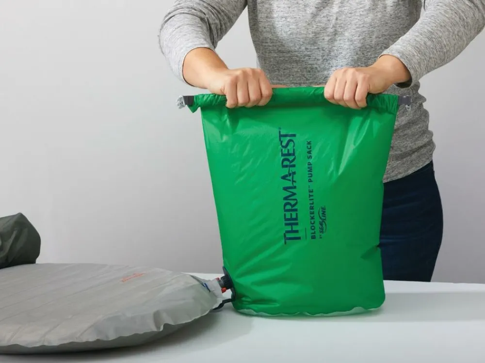 De Blockerlite Pump Sack van Therm-A-Rest is geproduceerd met de hulp van SealLine, een gespecialiseerde producent van waterdichte zakken. Met deze opblaaszak hoef je nooit meer je mat op te blazen en zo kun je aardig wat sterretjes voor de ogen besparen aan het eind van een pittige dag in de natuur. Je zet de pompzak gemakkelijk op het ventiel van iedere Therm-A-Rest mat (mits deze een nieuw ventiel van na het voorjaar 2020 heeft) en dan druk je simpelweg de lucht uit de zak in de mat. Zo ben je veel sneller klaar met het opblazen van je mat en krijg je ook nooit ademvocht in je mat (wat heel soms tot schimmelvorming kan leiden). Naast pompzak dient deze zak ook als waterdichte hoes voor andere spullen. Zo kan je overdag je spullen droog houden en ’s avonds makkelijk je mat opblazen.