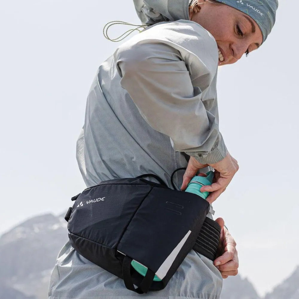 Universeel te gebruiken, comfortabele drinkflesriem of heuptas voor lopen in de bergen, nordic walking of langlauftochten. Dankzij de elastische, maar tegelijkertijd stabiele heupriem zit de tas ook bij intensieve sporten stevig en wiebelvrij op de heupen. De flessenhouder met bevestigingsrubber houdt de drinkfles stevig op het lichaam. De Attendant is van bluesign®-gecertificeerd, grotendeels gerecycled materiaal, gemaakt. Andere eigenschappen van deze milieuvriendelijke heuptas zijn de reflecterende elementen en een knipperlichtbevestigingsoptie, evenals een smartphonevak en een speciaal, rammelvrij sleutelvak. Een drinkfles is niet inbegrepen. Deze drinkflesriem is met Eco Finish zonder fluorkoolstoffen (PFC) milieuvriendelijk waterafstotend afgewerkt.