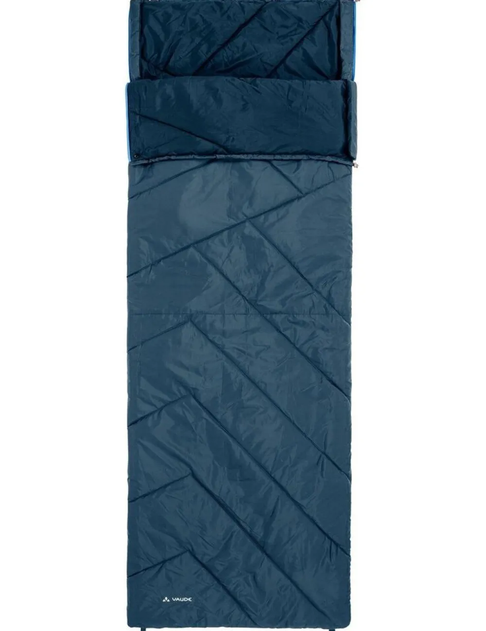 Variabel zonder einde: de Navajo 500 is een ruime dekenslaapzak, dekbed en warme poncho in één. Bovendien laat hij zich met alle andere VAUDE dekenslaapzakken koppelen – zonder vervelende ritssluiting in het ligvlak en met een aparte zij-ingang voor elke slaper. De synthetische vezelvulling zorgt voor een goede isolatie, verwarmt zelfs in vochtige toestand en is zeer goed ademend. Op koele nachten kan het hoofdgedeelte met trekkoord tot een driedimensionale capuchon worden omgevormd. Het nieuwe buitenmateriaal is licht, voelt aangenaam zijdeachtig aan en plakt niet aan de huid. De PFC-vrije Eco Finish maakt het water- en vuilafstotend. De Navajo 500 dekenslaapzak is onderdeel van het VAUDE recyclingconcept. De basismaterialen, evenals de vulling bestaan voor 100% uit gerecycled polyester. Bovendien kenmerkt hij zich door een materiaalbesparende snit en is hij robuust en gemakkelijk te repareren. Het VAUDE Green Shape-label staat voor een milieuvriendelijk, functioneel product van duurzame materialen.